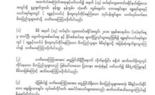 ကျင့်ထုံးဥပဒေပုဒ်မ ၄၀၁(၁)အရ နိုင်ငံရေး အကျဉ်းသားများအား စည်းကမ်းသတ်မှတ်ချက်များ၊ ဝန်ခံချက်များနှင့် ပြန်လွှတ်ပေးသည့် ကန့်သတ်ချက်များကို နိုင်ငံတော်...