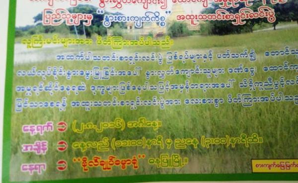 ဓနုဖြူမြို့ရှိ ဗိုလ်ချုပ်ဓမ္မာရုံ၌ သြဂုတ်လ ၂ ရက်နေ့တွင် ကျင်းပရန်စီစဉ်ထားသည့် စားကျက်မြေ အတွင်း နွားလွတ်ကျောင်း၍ ထောင်ဒဏ်ကျခံခဲ့ရသူများ၊...