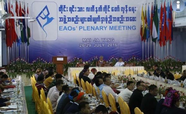 ကချင်ပြည်နယ် မိုင်ဂျာယန်တွင် ကျင်းပခဲ့သည့် တိုင်းရင်းသားတော်လှန်ရေးအဖွဲ့အစည်းများ၏ မျက်နှာစုံညီအစည်း အဝေးနောက်ဆုံးနေ့ တွင် ဘုံသဘောထားများအဖြစ်ရယူရန်...