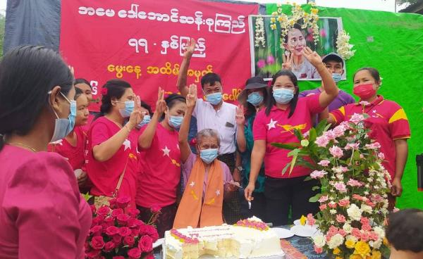 ကချင်ပြည်နယ် ဖားကန့်မြို့တွင် NLDပါတီဝင်များနှင့် ဒေသခံပြည်သူများပူးပေါင်း၍ ဒေါ်အောင်ဆန်းစုကြည်၏ ၇၇ နှစ်ပြည့်မွေးနေ့ပွဲပြုလုပ်ခဲ့သည်ဟု ပါတီဝင်အချို့က...