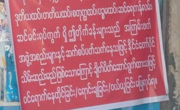 ဧရာဝတီတိုင်း ငပုတောမြို့နယ်ရှိ ကျေးရွာ အချို့တွင် ပြုလုပ်မည့် တပ်ထောက်ခံပွဲ စီတန်း လှည့်လည်သူများအား တစ်အိမ်လျှင် တစ်ယောက် မဖြစ်မနေ အတင်းအကြပ်...