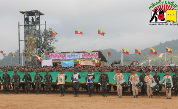 စစ်ချီတေးနဲ့ အတူ ပြောင်လက်နေတဲ့ စစ်ဝတ်စုံတွေနဲ့ ချီတက်လာတဲ့ ရှမ်း(သျှမ်း)စစ်သားတွေရဲ့ ဘယ်ညာ ခြေနင်းသံတွေကလည်း ခပ်ပြင်းပြင်း ကြားနေရပါတယ်။