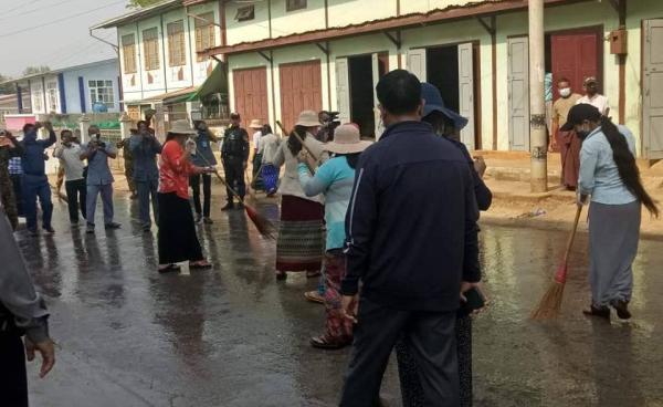 သျှမ်းပြည်တောင်ပိုင်း ဟိုပုံးမြို့နယ်တွင် ယမန့်နေ့ ဧပြီ ၂၇ ရက် သျှမ်းပြည်ဝန်ကြီးချုပ် နှင့် လူမှုဝန်ကြီး လာချိန်တွင် ပြည်သူများက မြက်နုတ်၊...