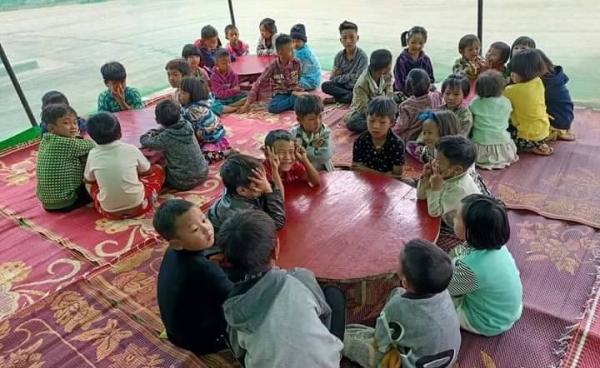 သျှမ်းတောင် ပင်လောင်းမြို့နယ် နောင်တရားမြို့တွင် ရောက်ရှိခိုလှုံနေသော ကရင်နီပြည်မှ စစ်ရှောင်လာသည့် ကလေးငယ်များအား အခြေခံပညာများကို...