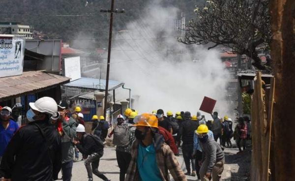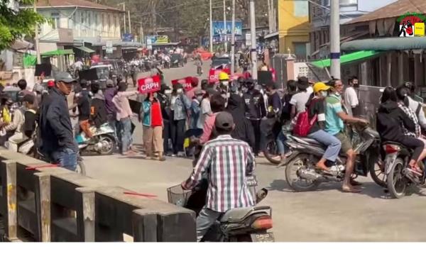 သျှမ်းပြည်မြောက်ပိုင်း ကျောက်မဲမြို့ ယနေ့ (မတ်လ ၁၀) တွင် စစ်အာဏာရှင်ကျဆုံးရေး ဆန့်ကျင်ဆန္ဒထုတ်ဖော်သည့် လူထုသပိတ် စစ်ကြောင်း ကို အရပ်ဝတ် ရဲ၊စစ်တပ်မှ...