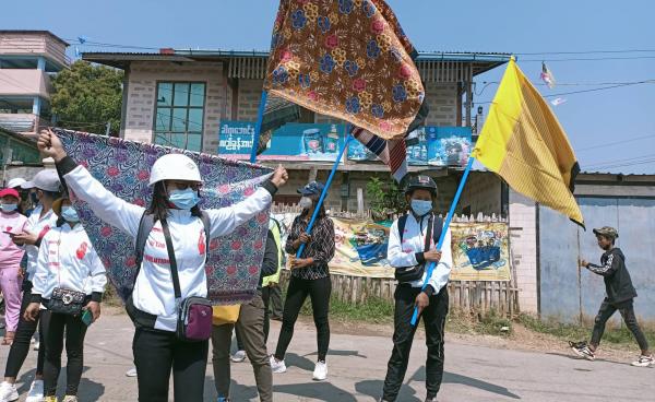 မတ်(၈)ရက် နိုင်ငံတကာ အမျိုးသမီးများနေ့ တွင် တောင်ကြီးမြို့ အမျိုးသမီး ထဘီသပိတ်စစ်ကြောင်း ထွက်ရန် ကြိုးစားကြသော်လည်း စစ်ကောင်စီ၏ လက်နက်ကိုင် အဖွဲ့က...