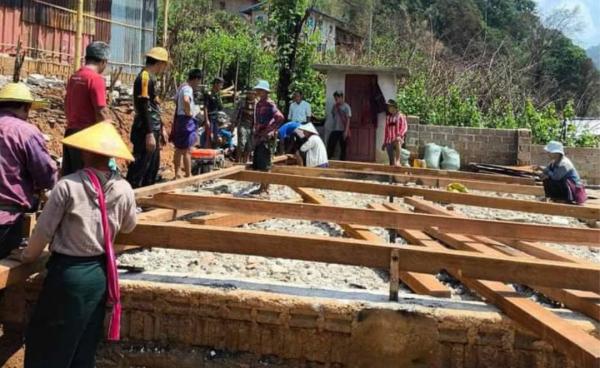 သျှမ်းပြည်တောင်ပိုင်း ဟိုပုံးမြို့နယ် မဲနယ်တောင် ဒေသတွင် တိုက်ပွဲကြောင့်ပျက်စီးသွားသည့် နေအိမ်များကို ပြည်သူများက ကိုယ်ထူ၊ကိုယ်ထ နည်းစနစ်ဖြင့်...