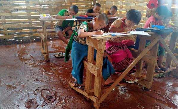 နန်းဆိုင်ဖူး — သျှမ်းပြည်မြောက်ပိုင်း တန့်ယန်းမြို့နယ် အတွင်းရှိ လွယ်လွမ့် ပရဟိတကျောင်းတွင် စာသင်ကြားနေသည့် ကလေးငယ်များသည် မိုးရာသီရောက်တိုင်း...