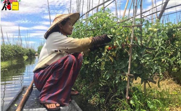 နန်းဆိုင်ဖူး — မျက်နှာတွင် သနပ်ခါး အပြည့်လိမ်း၊ အင်္ကျီလက်ရှည်ဝတ် လက်အိတ်စွတ် ဝါးခမောက်ဟောင်းဆောင်းထားတဲ့ အမျိုးသမီး ဟာ နေပူရှိန်ကို အံ့တုပြီး...