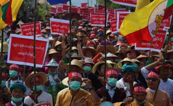 လူပေါင်းများစွာ ၏ နဖူးတွင် “ No Coal” ဆိုသည့် အနီရောင် နဖူးစည်း ပတ်ကာ တချို့မှာ လက်ပတ်တွင် ပတ်ထားကြပြီး လူထု ဆန္ဒထုတ်ဖော်မှု ပြုလုပ်ခဲ့သည်။ ထို...