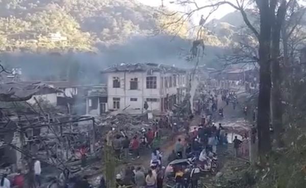 သျှမ်းပြည်မြောက်ပိုင်း၊ နမ့်လန်မြို့ကို ယမန်နေ့ (နိုဝင်ဘာလ ၅ ရက်)၊ နေ့လယ်ပိုင်းက ကိုးကန့်တပ် MNDAA ရှော့တိုက်ဒုံးဖြင့် ပစ်ခတ်ရာ ရပ်ကွက် အတွင်းရှိ...