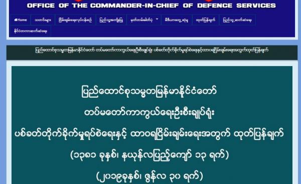 မြန်မာ့တပ်မတော် မှ တတိယကြိမ်မြောက် တိုင်းစစ်ဌာနချုပ် ၅ တိုင်းကို ပစ်ခတ်ရပ်စဲရေး ၂ လ ထပ်မံတိုးမြင့် ရပ်ဆိုင်းလိုက်ကြောင်း တပ်မတော်ကာကွယ်ရေး...