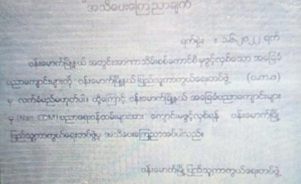 စစ်ကိုင်းတိုင်းဒေသကြီး ဗန်းမောက်မြို့နယ် တောင်ပိုင်းဒေသက စာသင်ကျောင်းအများစုကို မဖွင့်ဖို့အတွက် သတိပေးစာကို ဗန်းမောက်မြို့နယ် ပြည်သူ့ကာကွယ်ရေးတပ် (ပ...