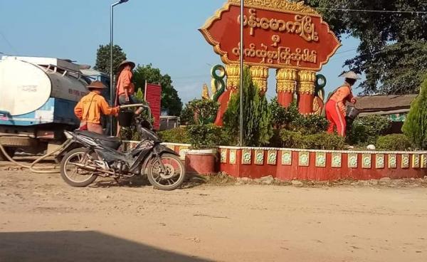 စစ်ကိုင်းတိုင်းဒေသကြီး အထက်ပိုင်း ဗန်းမောက်မြို့အဝင် ကိုဗစ်ကာကွယ်ဆေးထိုးပေးနေတဲ့ ဂိတ်အနီးမှာ လုံခြုံရေးယူနေတဲ့ ရဲတပ်ဖွဲ့ဝင်တွေကို ဒေသခံကာကွယ်ရေးတပ်...