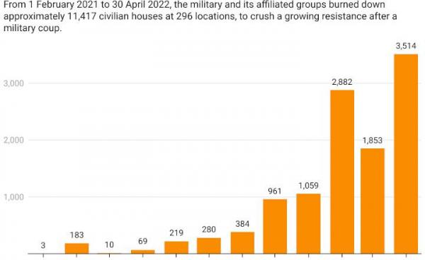 ပြီးခဲ့တဲ့ ဧပြီလ တစ်လတည်းမှာပဲ စစ်ကိုင်းတိုင်းဒေသကြီးထဲမှာ နေအိမ်နှစ်ထောင့်ငါးရာကျော် မီးရှို့ဖျက်ဆီးခံခဲ့ရတယ်လို့ နေအိမ်မီးရှို့ခံရမှုတွေနဲ့...