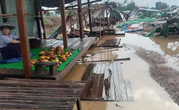 အင်းတော်ကြီးဒေသ မိုင်းနောင်ကျေးရွာမှာ ဧပြီလ ၁၇ ရက်နေ့ညက လေပြင်းမုန်တိုင်းတိုက်ခတ်မှုကြောင့် ယာယီစျေးတစ်ခုလုံးနီးပျက်စီးသွားခဲ့တယ်လို့...