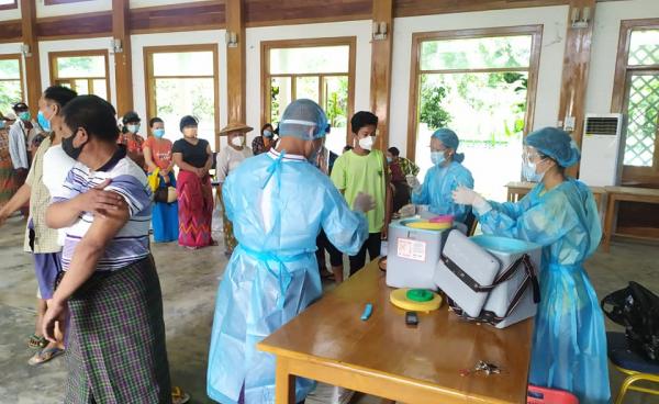 စစ်ကိုင်းတိုင်းဒေသကြီး ဗန်းမောက်မြို့ရှိ ပရဟိတစေတနာ့ဝန်ထမ်းများနှင့် သက်ကြီးရွယ်အိုများကို Covid-19 ကာကွယ်ဆေးထိုးနှံပေးခဲ့ကြောင်း...