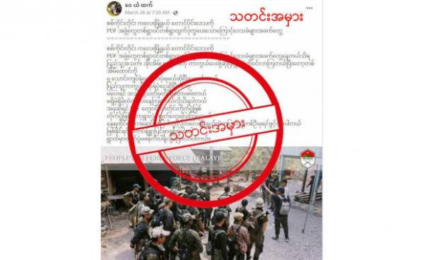 အဲ့ဒီသတင်းအမှားကို မှုခင်းသတင်း၊ နိုင်ငံရေးနဲ့ အထွေထွေ သတင်းများ ဆိုတဲ့ Group မှာ Nyein Nyein ဆိုသူက “ PDF အဖွဲ့တွေဟာ စစ်ကောင်စီကို တော်လှန်တာမဟုတ်ပဲ...