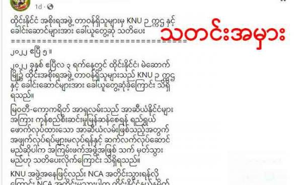 ၂၀၂၂ ခုနှစ် ဧပြီလ ၆ ရက်။ ပြီးခဲတဲ့ ဧပြီလ ၃ ရက်နေ့က KNU ဥက္ကဋ္ဌ ဗိုလ်ချုပ်ကြီး စောမူတူးစေးဖိုးကို ထိုင်းအစိုးရ တာဝန်ရှိသူတွေက ခေါ် ယူတွေ့ ဆုံပြီး NCA...