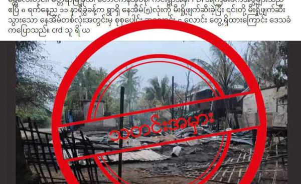 မန္တလေးတိုင်း မတ္တရာမြို့နယ် ကင်းရွာထဲက လူနေအိမ် ၅ လုံးကို PDF တွေက မီးရှို့ဖျက်ဆီးသွားခဲ့ပြီး မီးရှို့ခံ ထား ရတဲ့ အိမ်တစ်လုံထဲမှာ အလောင်း ၂...