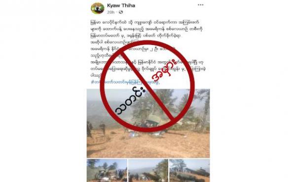 အဆိုပါသတင်းအမှားကို ကျော်သီဟ အကောင့်မှ “မြန်မာ လေပိုင်နက်ထဲကို ကျူးကျော် ဝင်ရောက်ကာ အကြမ်းဖက်များကို ထောက်ပံ့နေတဲ့ အမေရိကန် စစ်လေယာဉ်တစ်စီးကို...