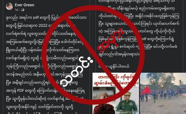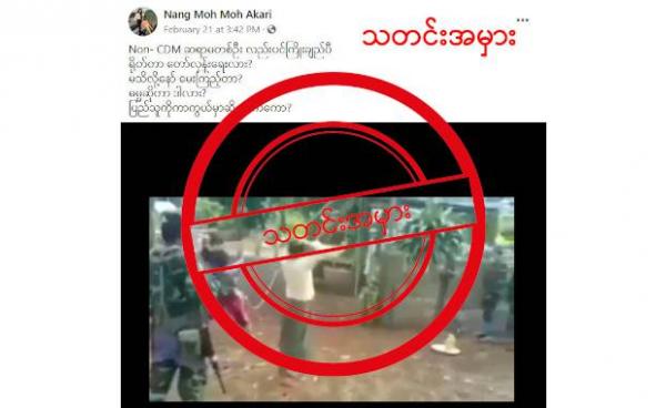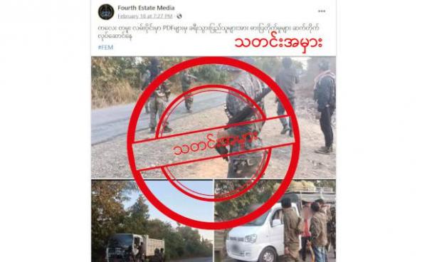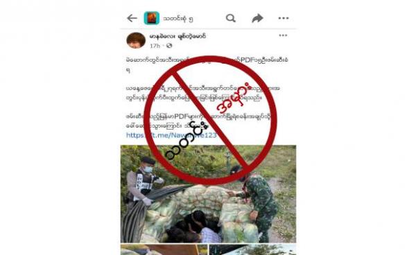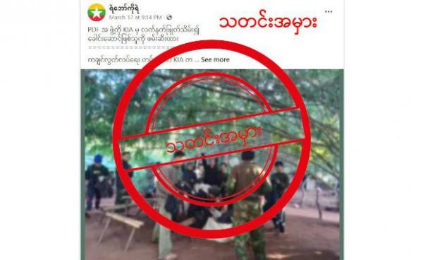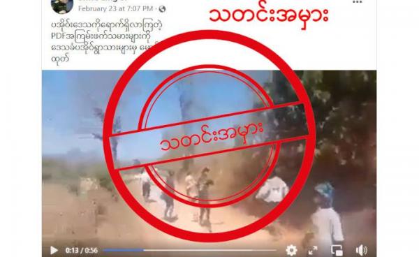 ထိုသတင်းအမှားကို သတင်းနှင့်ခံစားချက်ရင်ဖွင့်သံများ ဆိုတဲ့ Facebook အကောင့်မှာ မတ်လ ၁၇ ရက်နေ့က ဖော်ပြထားတာဖြစ်ပြီး “PDF အကြမ်းဖက်လူသတ်သများရဲ့...