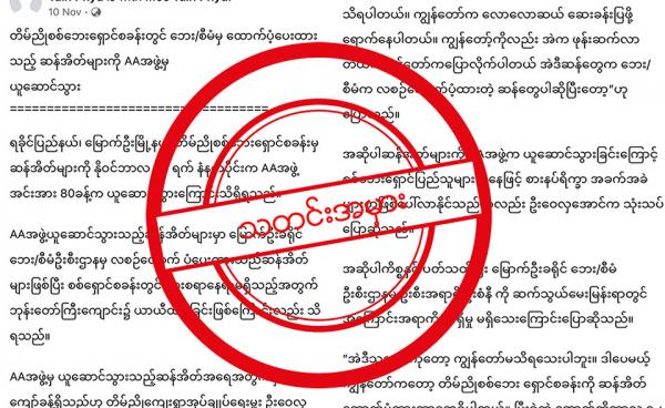 ရခိုင်ပြည်နယ် မြောက်ဦးမြို့နယ်ရှိ တိမ်ညိုစစ်ရှောင်စခန်းတွင် ဘေး/စီမံမှ ထောက်ပံ့ပေးထားသည့် ဆန်အိတ်များကို AA အဖွဲ့မှ ယူဆောင်သွား ဆိုတဲ့သတင်းတစ်ပုဒ်ကို...