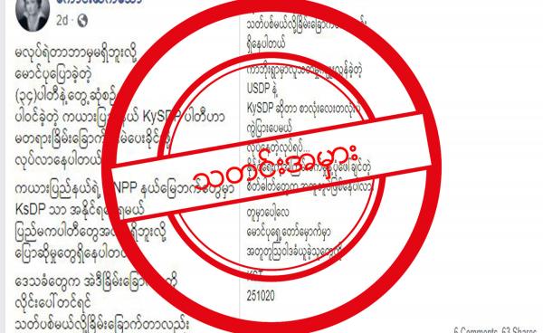 ကွန်ဟိန်းမြို့ ကြိုတင်မဲပေးရာတွင် SNLD ကိုမဲပေးရန် ဖိအားပေးမှုများရှိတယ်ဆိုတဲ့ခေါင်းစဉ်ဖြင့် သတင်းအမှားတစ်ခုဟာ နိုဝင်ဘာလ ၂ ရက်နေ့ နေ့လည် ၂ နာရီ ၃၅...