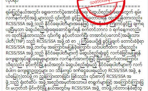 နှင်းဆီကော သစ်ခုတ်သမားတို့ ပြန်လာပြီ ဆိုသူတွေကော နိဂုံးချုပ်ငြိမ်းပြီဆိုတဲ့ စာအရေးအသားတစ်ခုဖြင့် ညီညွှတ်သော တိုင်းရင်းသား လူမျိုးများဒီမိုကရေစီပါတီ...
