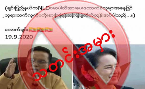 ရွေးကောက်ပွဲနီးလာတာနဲ့အမျှ ဆိုရှယ်မီဒီယာပေါ်မှာပြန့်နေတဲ့ သတင်းအမှားတစ်ပုဒ်ကတော့ NLD ပါတီနောက်ထပ် (၅) နှစ် အစိုးရဆက်လုပ်ခွင့်ရမည်ဆိုပါက...