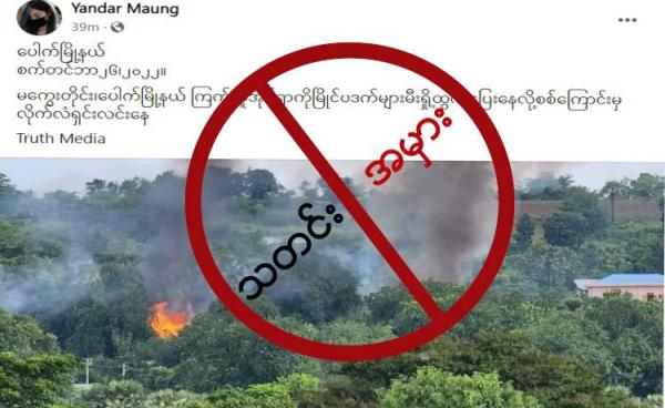 ဒီသတင်းအမှားကို Yandar Maung ဆိုတဲ့ Facebook အကောင့်ကနေ “မကွေးတိုင်း၊ ပေါက်မြို့နယ် ကြက်ဆူအိုင့်ရွာကို မြိုင်ပဒက်များ မီးရှို့ထွက်ပြေးနေလို့...