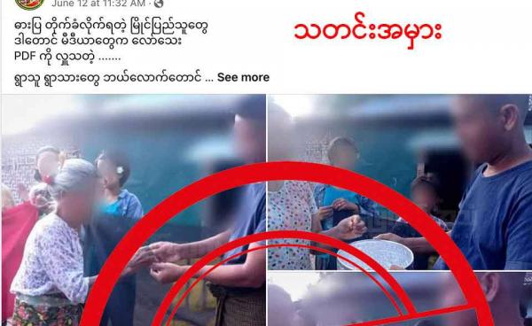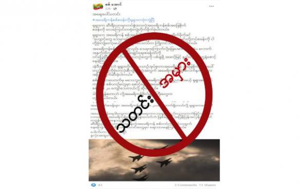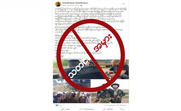 ဒီသတင်းအမှားကို ဇွန်လ ၁၉ ရက်နေ့က “တစ်ချိန်တုန်းက အောင်စစ်သည်” အကောင့်ကနေပြီး“ယုံကြည်ရာ အစုအဖွဲ့လေးတွေနဲ့ ညီညွတ်စွာနေကြ…မကြာခင်…...