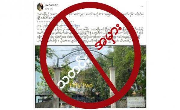ဒီသတင်းအမှားကို စစ်ကောင်စီရဲ့ သတင်းဌာနတစ်ခုဖြစ်တဲ့ Fifty Two News ကရေးသားဖော်ပြထားတာဖြစ်ပြီး See Sar Htut အကောင့်က “မနေ့က ဇွန်လ (၁၆) ရက်နေ့က မနက် ၁၁...