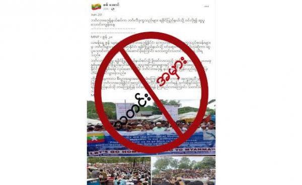 ဒီသတင်းအမှားကို စစ်အောင်ဆိုတဲ့ Facebook အကောင့်မှာ “ဇွန် ၁၉ရက်က ဘင်္ဂလားဒေ့ရှ်နိုင်ငံ၊ ကော့ဘဇားခရိုင်၊ ဒုက္ခသည်စခန်းများမှ ဘင်္ဂလီများသည်...