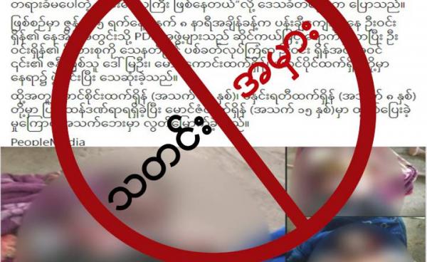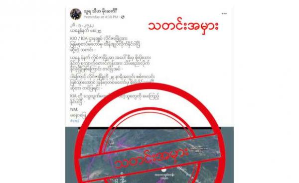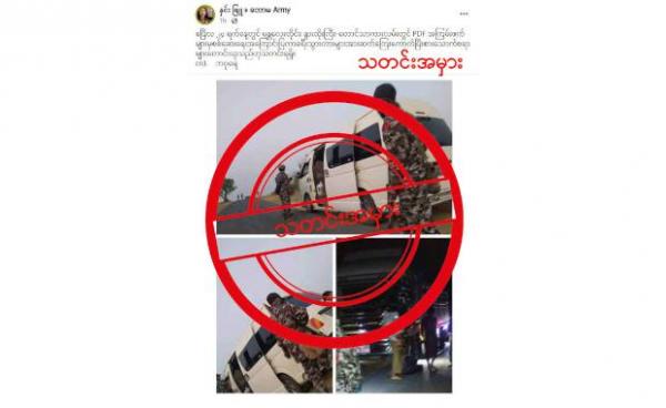 ထိုသတင်းအမှားမှာ “ဇွန်လ ၆ ရက် နံနက် ၉ နာရီခန့်မှာ ဒေသကွပ်ကဲမှု စစ်ဌာနချုပ် (ကလေး) အောင်ဆန်း ခန်းမမှာ ပြစ်မှုကျူးလွန်မှုမရှိတဲ့ PDF သင်တန်းဆင်း...