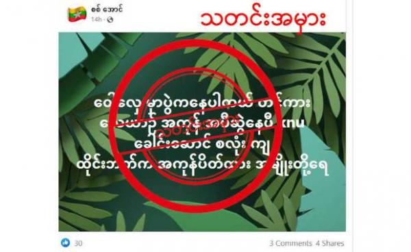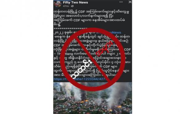 ဒီသတင်းအမှားကို Fifty Two News ဆိုတဲ့ စစ်ကောင်စီဝါဒဖြန့်လူမှုကွန်ယက်စာမျက်နှာကနေ မေလ ၂၄ ရက်နေ့က ရေးသားထုတ်လွှင့်ခဲ့တာဖြစ်ပါတယ်။ Fifty Two News...