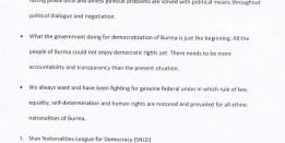 တိုင်းရင်းသားပါတီ ရ ပါတီ ပါဝင်ဖွဲ့စည်းထားသည့် ညီညွတ်သော တိုင်းရင်းသားလူမျိုးများ မဟာမိတ်အဖွဲ့ UNA မှ နိုင်ငံရေးတွေ့ဆုံဆွေးနွေးရန်လိုဟု ပြီးခဲ့သည့်...