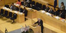 နေပြည်တော် ကော်မရှင်ရုံးတွင် (၂၈-၃-၂၀၁၂) နေ့က ပြုလုပ်သော သတင်းစာ ရှင်းလင်းပွဲ၌ ရွေးကောက်ပွဲ ကော်မရှင် ဥက္ကဋ္ဌ နှင့် ရွေးကောက်ပွဲဆိုင်ရာ စုံညီခုံရုံး...