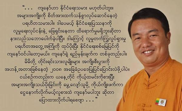 မေး-ဘာကြောင့် လာမယ့်ရွေးကောက်ပွဲမှာ ကိုယ်စားလှယ်လောင်းအဖြစ် ဝင်ရောက်အရွေးခံရတာလဲ။ဖြေ-ကျွန်တော်တို့လူမျိုးရဲ့ အကျိုး၊ ပြည်သူတွေရဲ့အကျိုးကို...