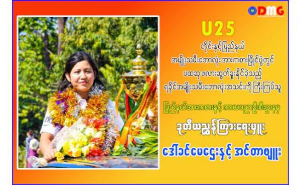 နေပြည်တော်တွင်ကျင်းပခဲ့သော U25 တိုင်းနှင့်ပြည်နယ် အမျိုးသမီးဘောလုံး အားကစားပြိုင်ပွဲတွင် ရခိုင်အမျိုးသမီးဘောလုံးအားကစားအသင်းမှ...