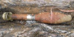 ကယားပြည်နယ် ဒီးမော့ဆိုမြို့နယ် ငွေတောင်ကျေးရွာရှိ ငွေတောင်ဆည်ရေကန် ရေခမ်းလာသည့်အချိန်၌ ရေကန်ကမ်းစပ်တွင် RPG ဒုံးပစ်လောင်ချာသီး (အသေး) တလုံး...