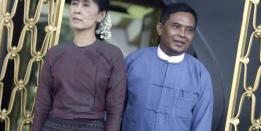မြန်မာ့ ဒီမိုကရေစီခေါင်းဆောင် ဒေါ်အောင်ဆန်း စုကြည် နှင့်အလုပ်သမားနှင့်လူမှုဝန်ထမ်းဝန်ကြီး ဌာန ပြည်ထောင်စုဝန်ကြီး ဦး အောင်ကြည်တို့ ရန်ကုန်မြို့...