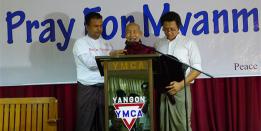 ရန်ကုန်မြို့ သိမ်ဖြူလမ်းနှင့် မပာာဗန္ဓုလ လမ်းထောင့်ရှိ YMCA ခန်းမန့၌ ယနေ့ မွန်းလွဲ နှစ်နာရီ အချိန်က ပြုလုပ်ခဲ့သည့် ဆုတောင်းပွဲတွင် ဘာသာပေါင်းစုံမှ...