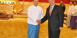 ဒီမိုကရေစီ မိတ်ဆွေ ၁၀ ပါတီမှ ခေါင်းဆောင်များနှင့် သမ္မတ ဦးသိန်းစိန်တို့ ပထမဆုံး အကြိမ် တွေ့ဆုံမှုကို နေပြည်တော် သမ္မတ အိမ်တော်တွင် ဗုဒ္ဓဟူးနေ့က...