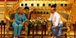 အမေရိကန် နိုင်ငံခြားရေးဝန်ကြီး ဟီလာရီကလင်တန်နှင့် မြန်မာ သမ္မတ ဦးသိန်းစိန်တို့ ကမ္ဘောဒီးယားနိုင်ငံ Siam Reap မြို့၌ သောကြာနေ့တွင် တွေ့ဆုံရန်ရှိပြီး...