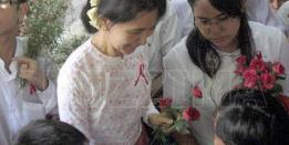 အင်္ဂါနေ့ မနက်ပိုင်းက ပြုလုပ်ခဲ့သည့် ရန်ကုန်တိုင်း မင်္ဂလာတောင်ညွန့်မြို့နယ် NLD ပါတီ ဆိုင်းဘုတ်တင်ပွဲ အခမ်းအနားတွင် ဒေါ်အောင်ဆန်းစုကြည်...