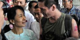 ဒေါ်အောင်ဆန်းစုကြည်က ၁ဝ နှစ်ကျော် ကွဲကွာခဲ့သော သားငယ် ကိုထိန်လင်း ခေါ် ကင်မ် အဲရစ်ကို ရန်ကုန်မြို့ မင်္ဂလာဒုံ လေဆိပ်၌ ယနေ့ နံနက် သွားရောက်ကြိုဆိုခဲ့...