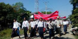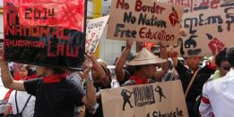 အတည်ပြု ပြဌာန်းလိုက်သည့် အမျိုးသား ပညာရေး ဥပဒေကို ကန့်ကွက်ဆန္ဒပြသည့် တက္ကသိုလ် ကျောင်းသား များ၏ သပိတ်မှောက် ဆန္ဒပြပွဲကို လေးရက်မြောက်သည့် နို၀င်ဘာ ၁၇...