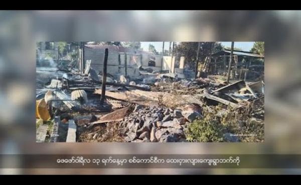 - စစ်ကောင်စီဘက်က လက်နက်ကြီးရမ်းသန်းပစ်ခတ်တဲ့အတွက် ဒီးမော့ဆိုမြို့နယ် ထေးငှားလျားကျေးရွာက နေအိမ်တစ်လုံးနဲ့စပါးကျီတစ်လုံး မီးလောင်ပျက်စီးခဲ့ပါတယ်...