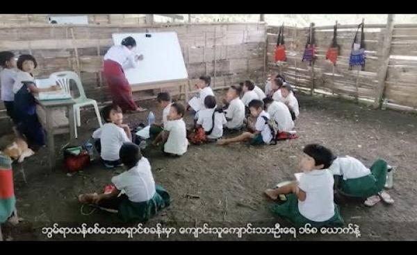 အင်ဂျန်ယန်မြို့နယ် ဘွမ်ရာယန်စစ်ဘေးရှောင်စခန်းက ကလေးတွေကို စာစတင် သင်ကြားနေပြီဖြစ်ပေမဲ့ စားပွဲ၊ ထိုင်ခံမလုံလောက်တာကြောင့် ကလေးတွေ...